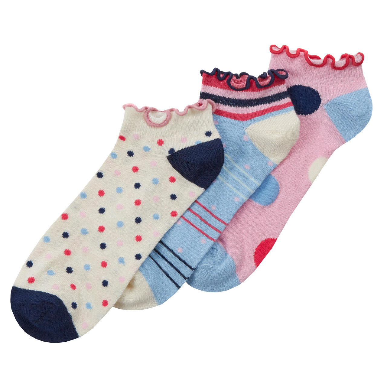 Ladies Bamboo Trainer Liners Ankle Socks Patterned Ruffle Edge Ripple Loose Top Dots