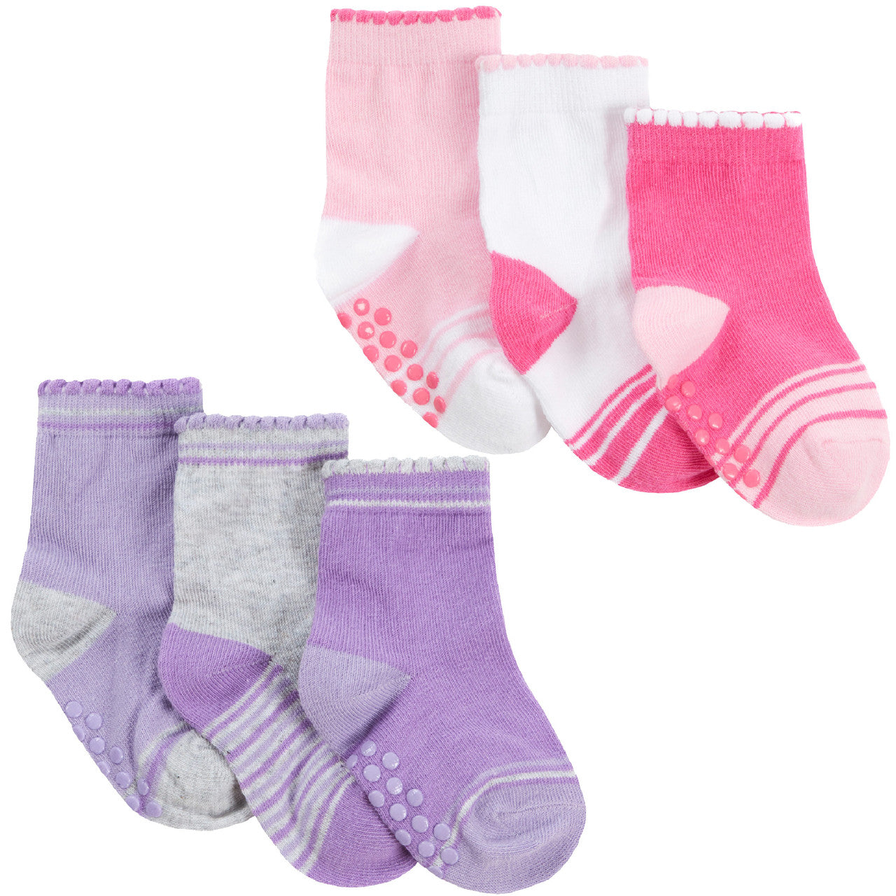 Baby Girls Socks With Anti Slip Grippers 3 or 6 Pairs