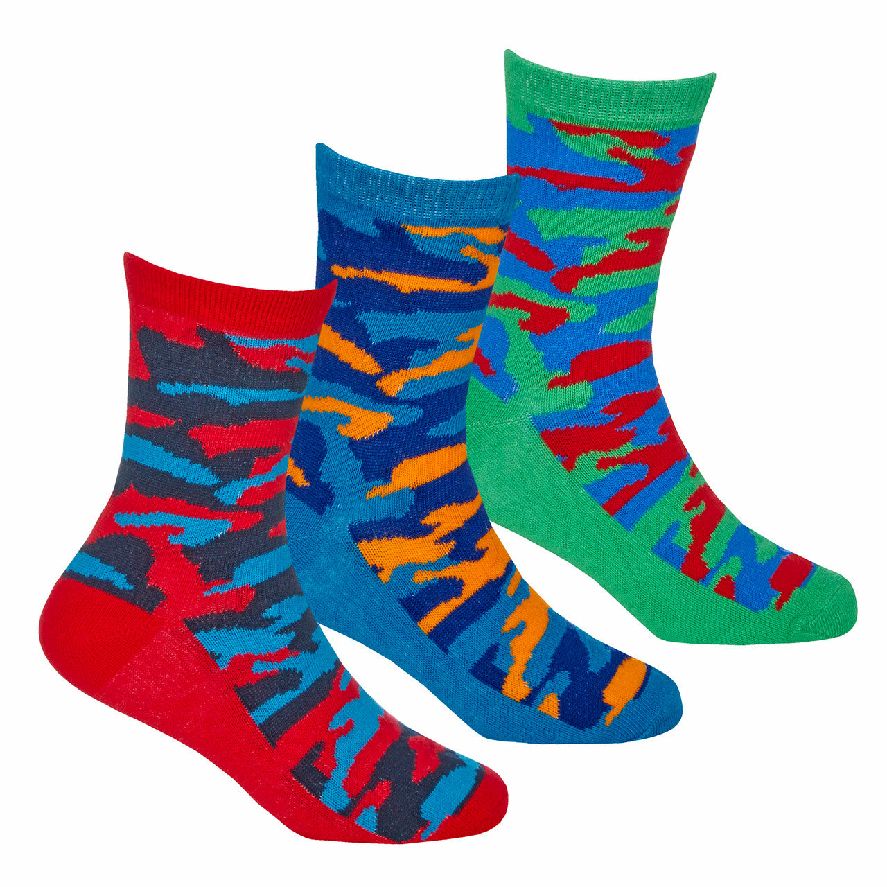Boys 3 Pairs Novelty Camo Designer Socks Red