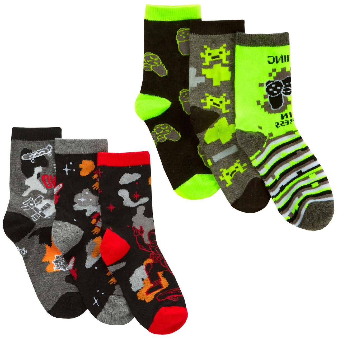 Boys Novelty Cotton Rich Crew Game Space Neon Mid Calf Socks