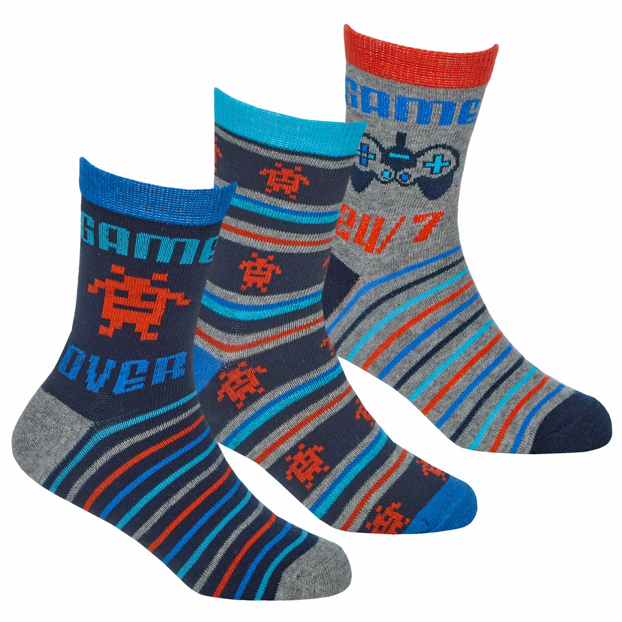 ๐Hey there, fashion lovers! Boys Novelty Gaming Designer Socks 3 Pairs Blue Game Over๐