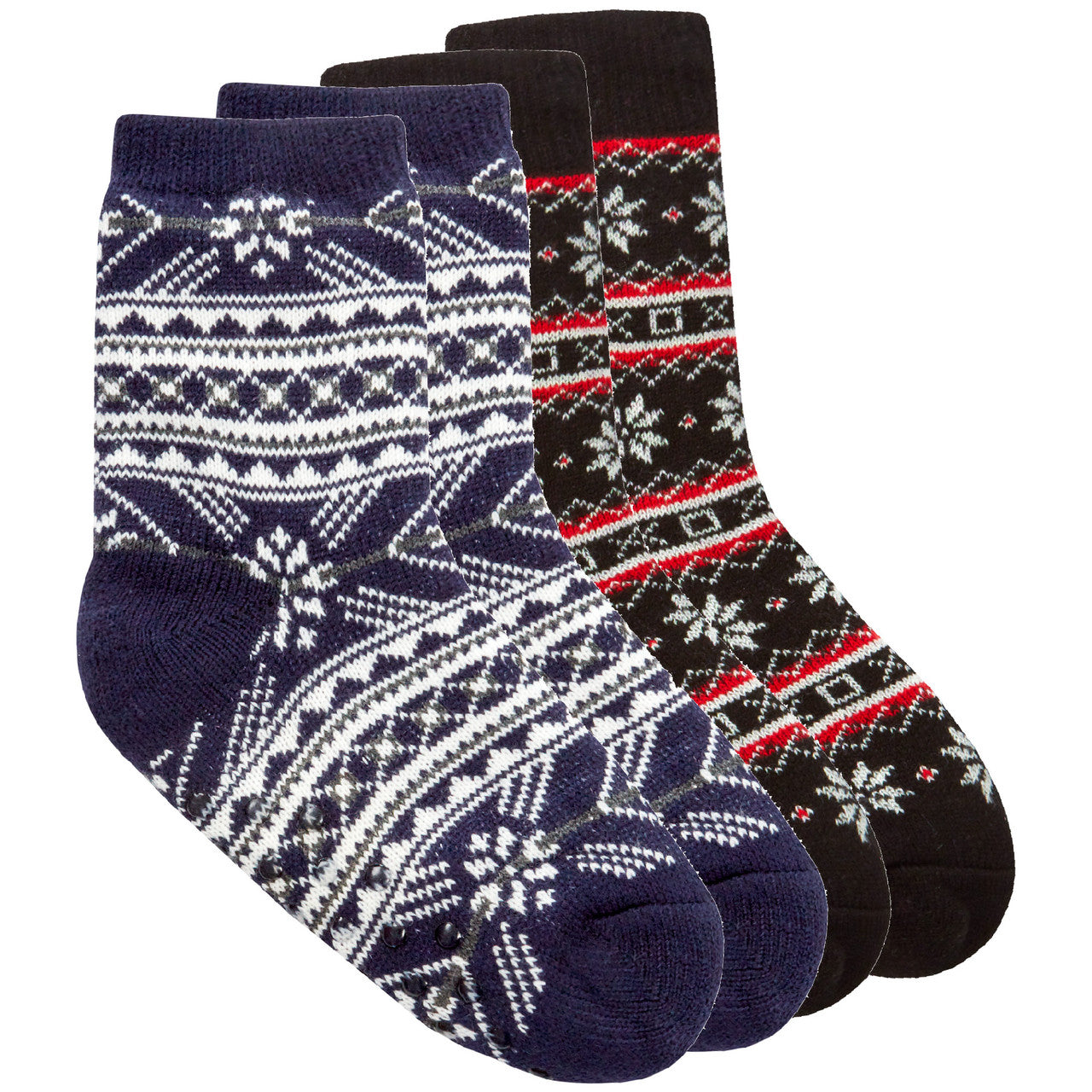 Girls Boys Fluffy Winter Warm Fair Isle Sherpa Lined Bed Socks with Grippers
