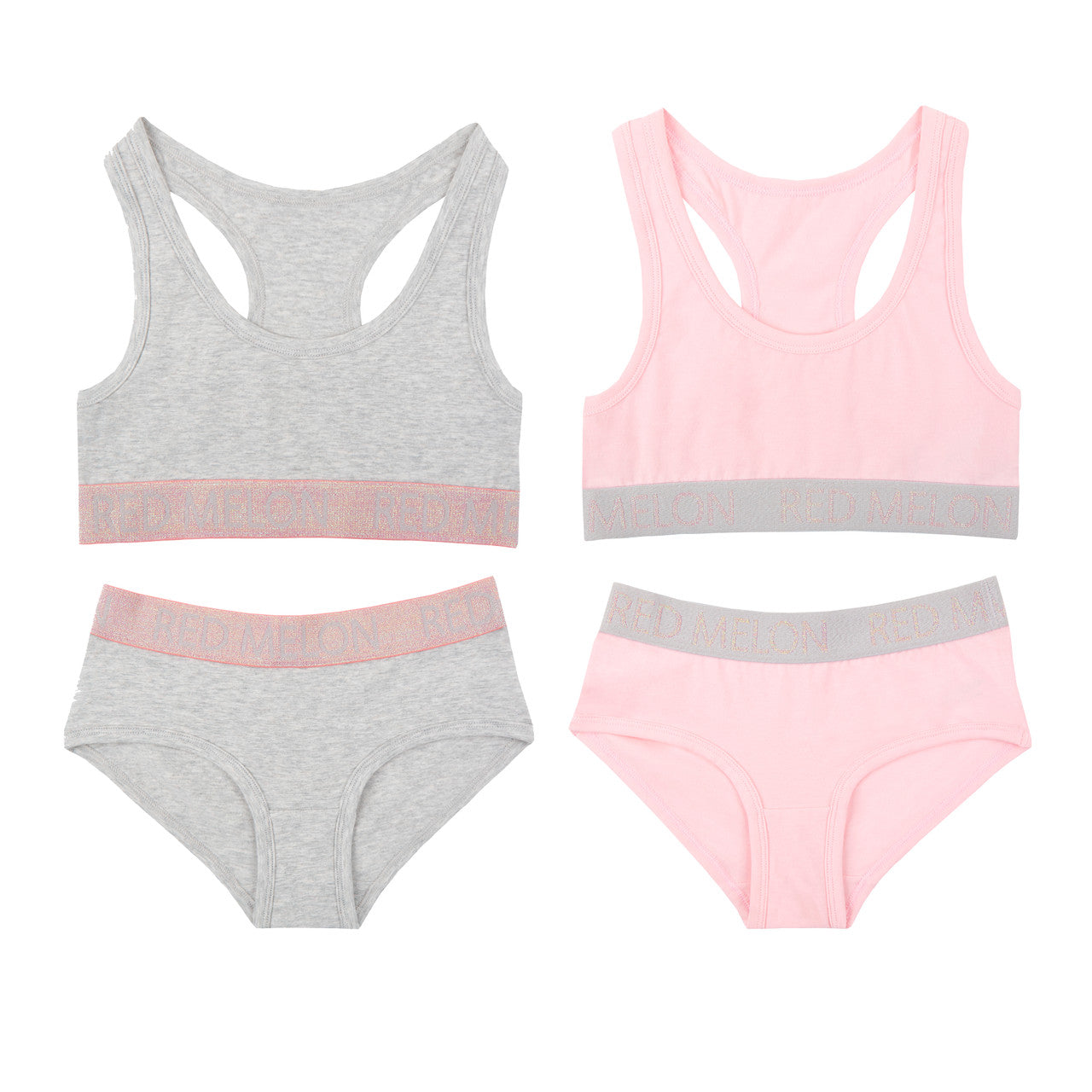 ๐Hey there, fashion lovers! Girls Crop Top Training First Bra & Knickers Glitter Brief 2 Sets Grey & Pink๐
