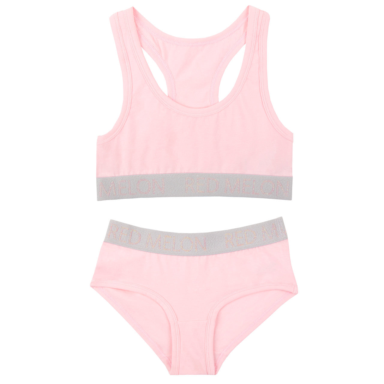 Girls Crop Top Training First Bra & Glitter Brief Set Pink