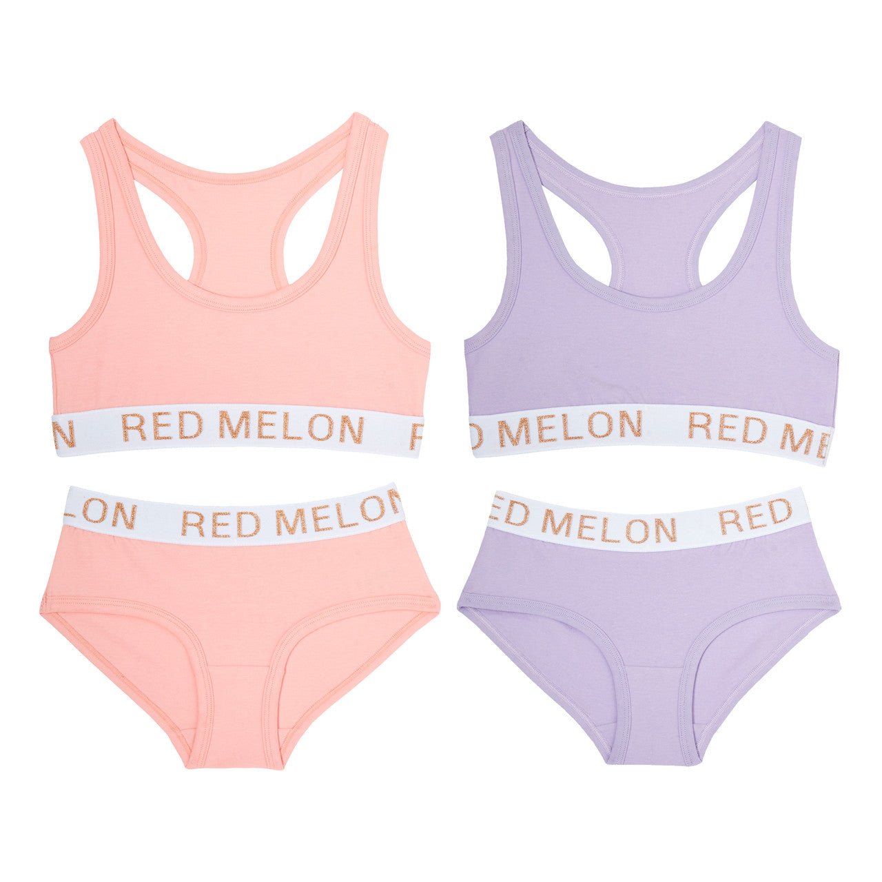 ๐Hey there, fashion lovers! Girls Crop Top Training First Bra & Knickers Glitter Brief 2 Sets Coral & Purple๐