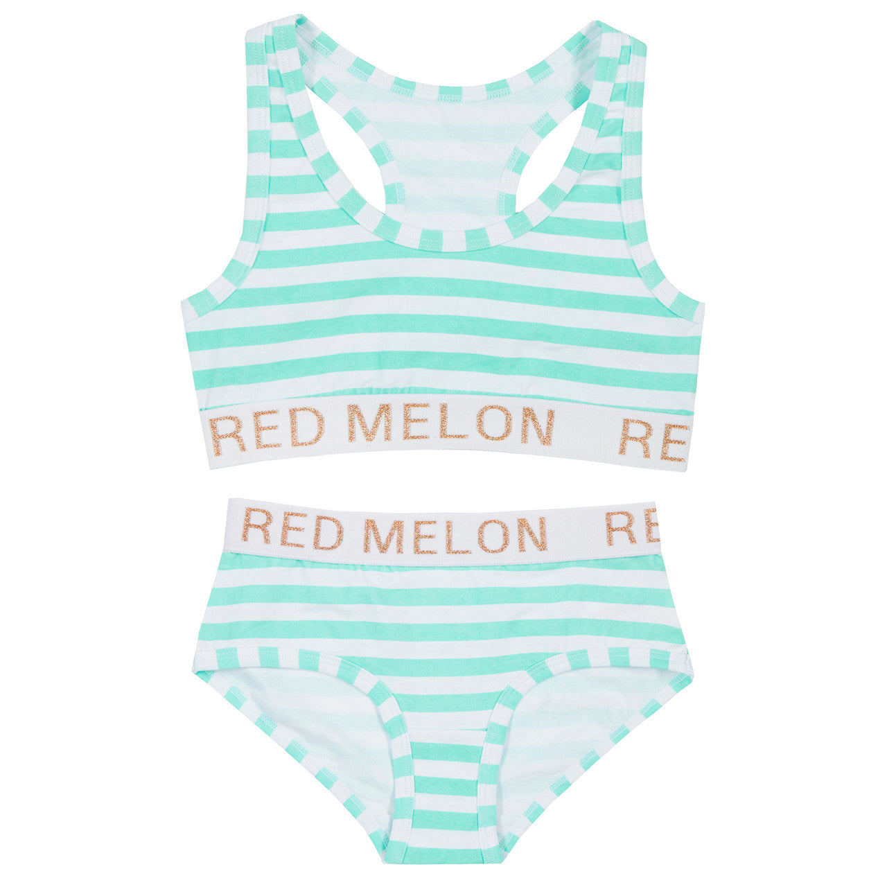 Girls Crop Top Training First Bra & Glitter Brief Set Stripes
