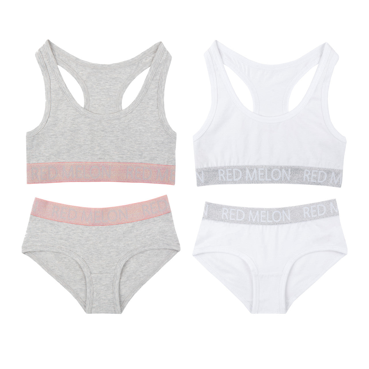 ๐Hey there, fashion lovers! Girls Crop Top Training First Bra & Knickers Glitter Brief 2 Sets White & Grey๐