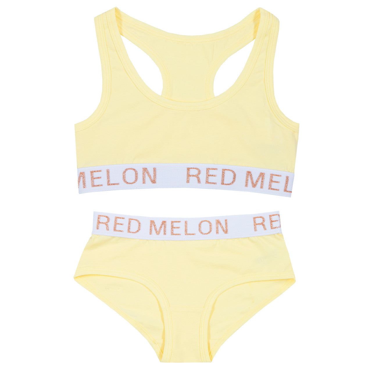 Girls Crop Top Training First Bra & Glitter Brief Set Lemon