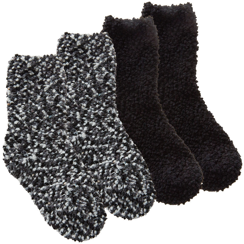 Girls Fluffy Bed Crew Socks Popcorn Style 2 Pairs Black Multipack
