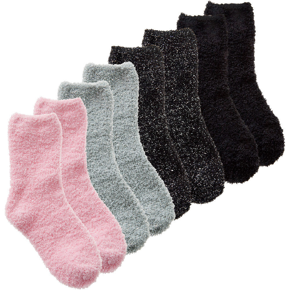 Girls Fluffy Cosy Bed Crew Winter Socks with Glitter Multipack