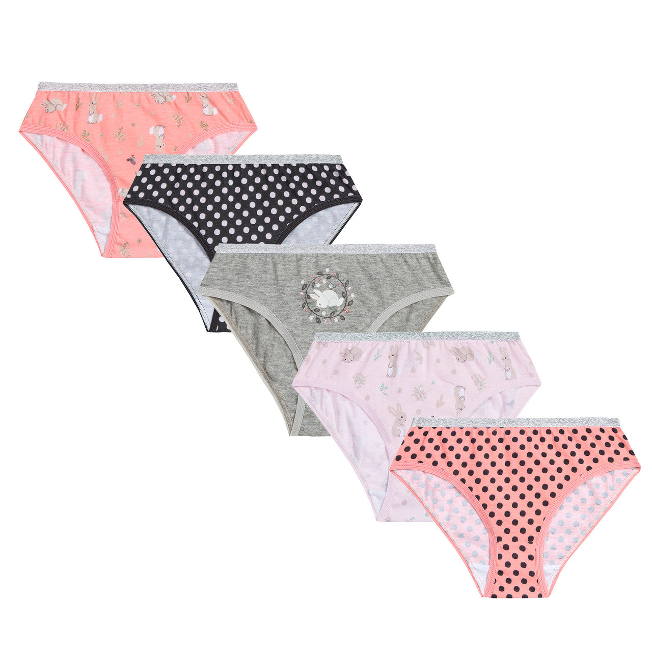 Girls Fun Novelty Print Brief Underwear Bunny Pack Of 5