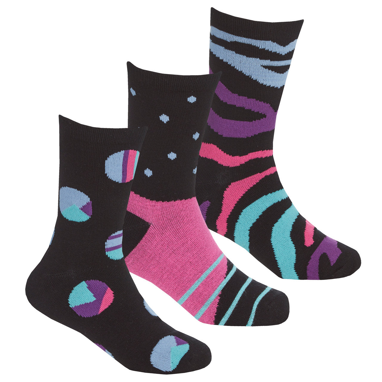 Girls Novelty Abstract Bamboo Socks Black - 3 Pairs
