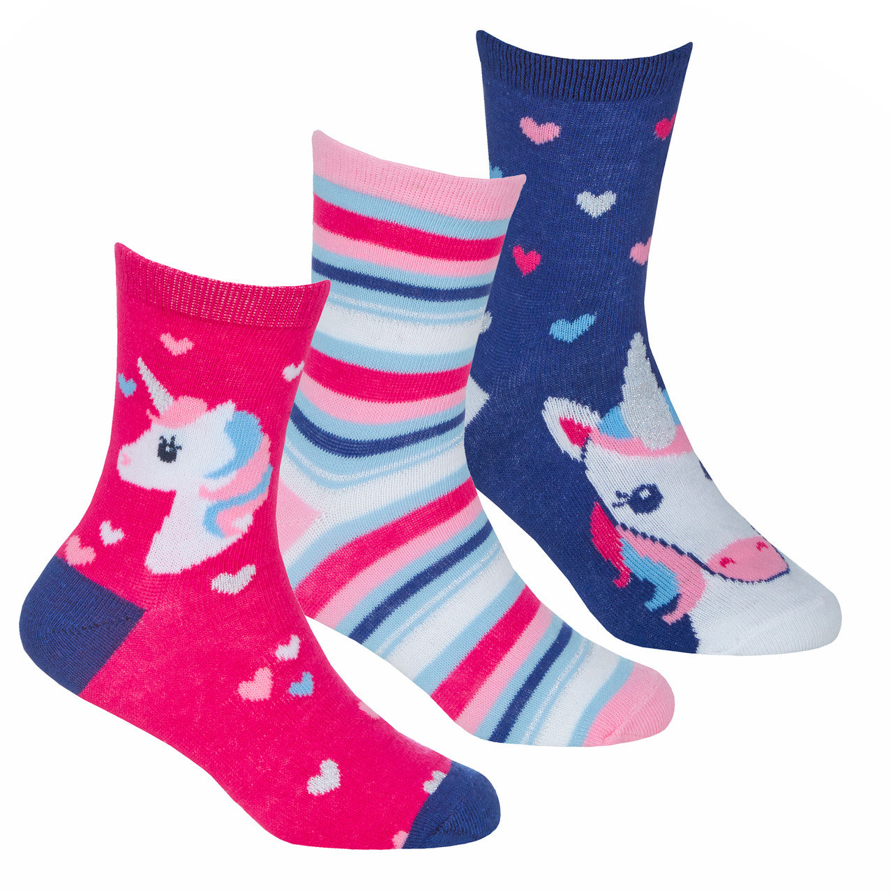 Girls Novelty Colourful Cute Unicorn Socks 3 Pairs Pink Unicorn