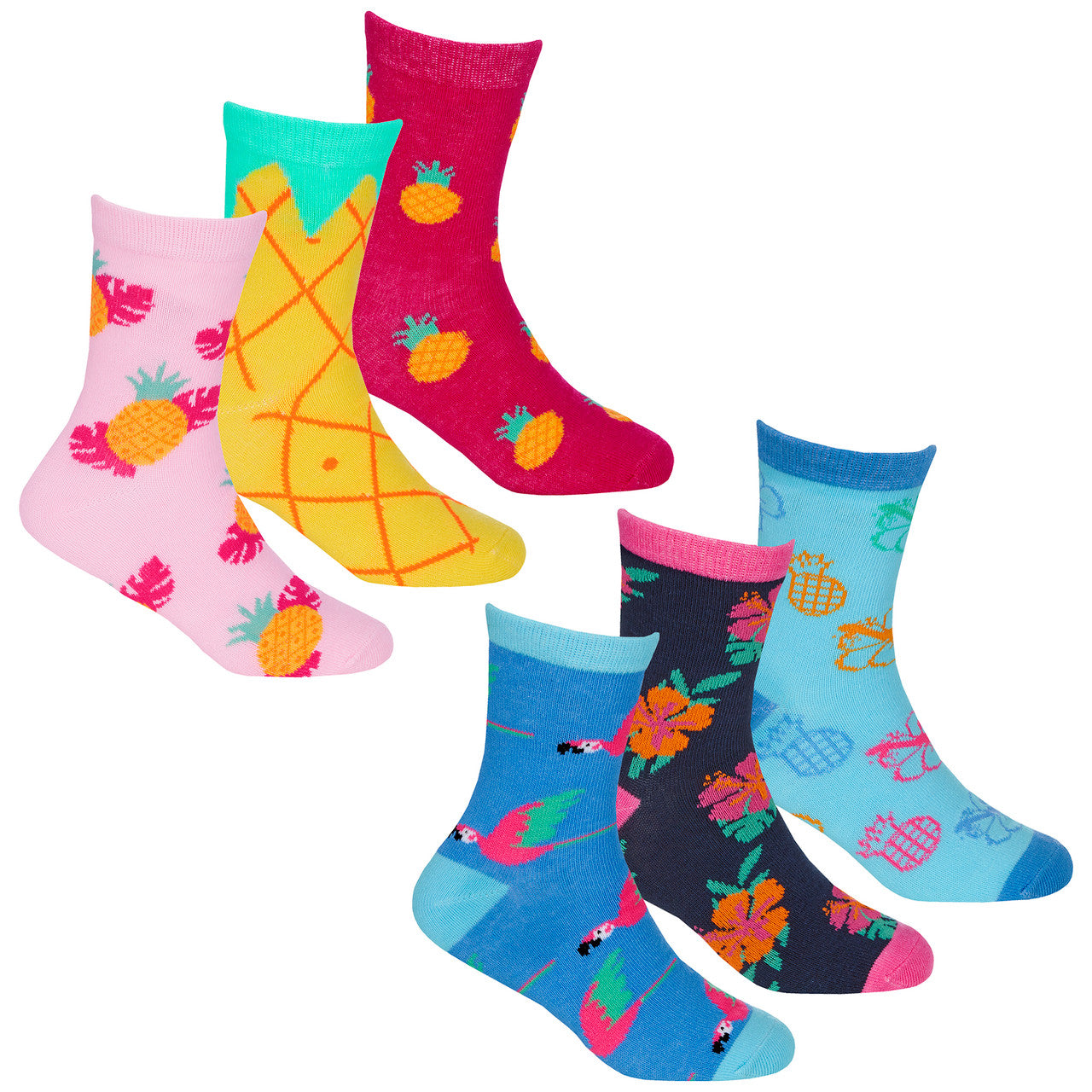 Girls Novelty Tropical Fruity Socks Mid Calf Crew Socks