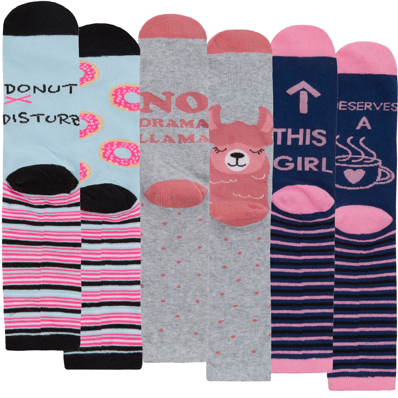 Ladies 3 Pairs Novelty Slogan Mid Calf Funky Socks Multipack