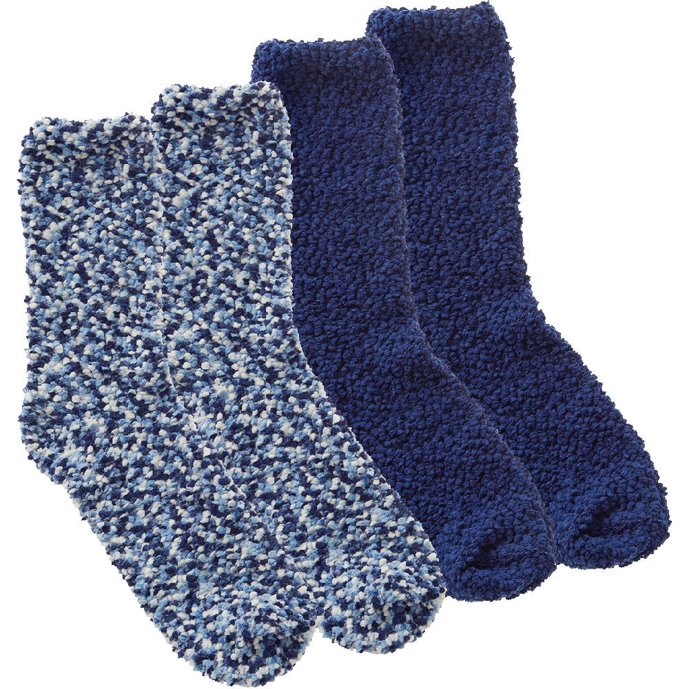 Ladies Chunky Bed Fluffy Socks Popcorn Style Blue 2 Pairs