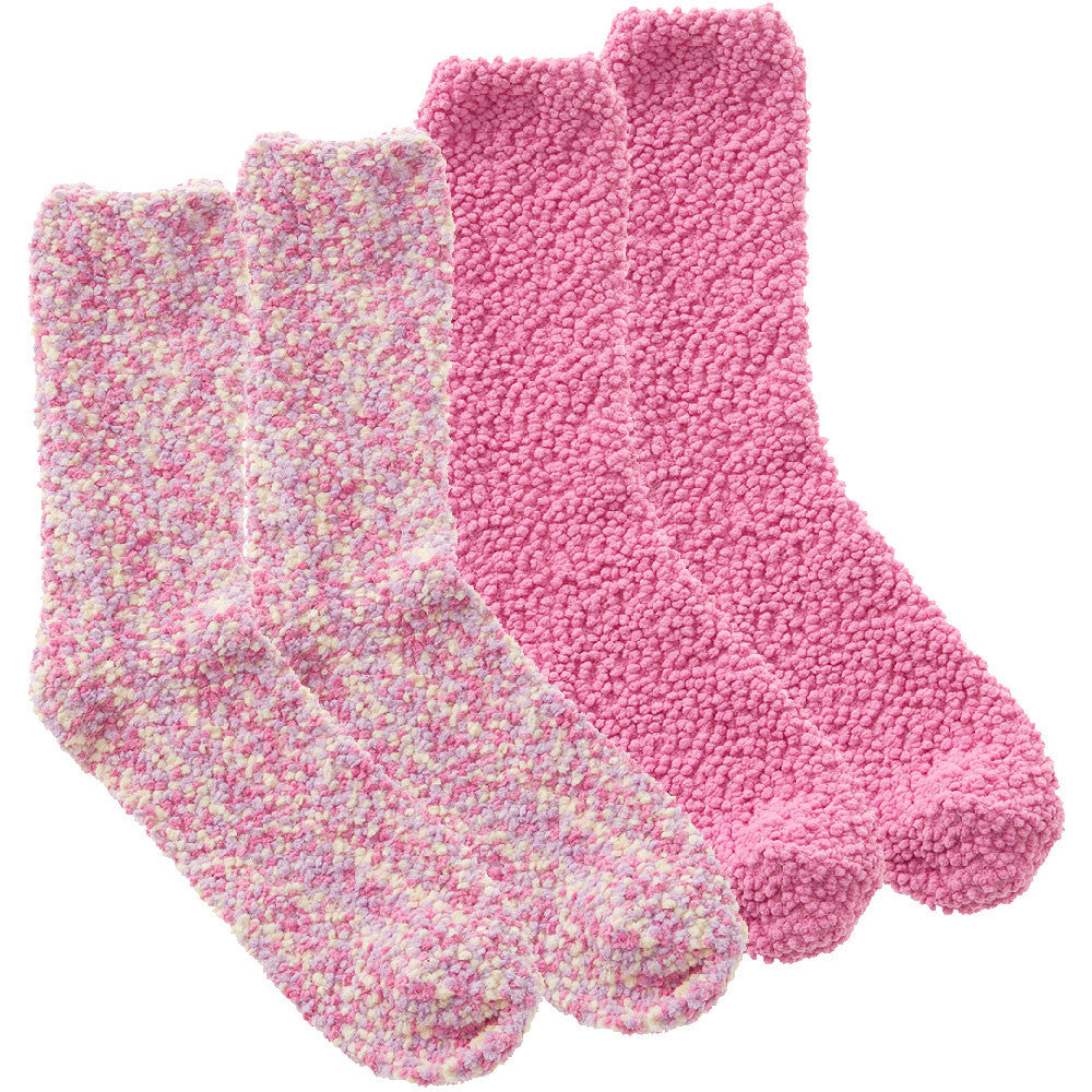 Ladies Chunky Bed Fluffy Socks Popcorn Style Pink 2 Pairs