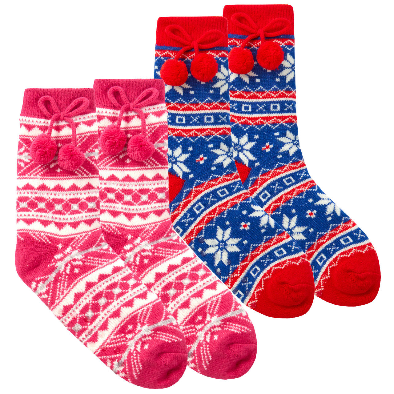 Ladies Fair Isle Loungewear Bed Cosy Socks with Sherpa Lining & Pom Pom