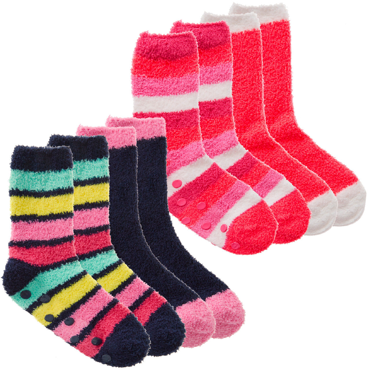 Ladies Fluffy Bed Stripped Winter Lounge Socks with Grippers