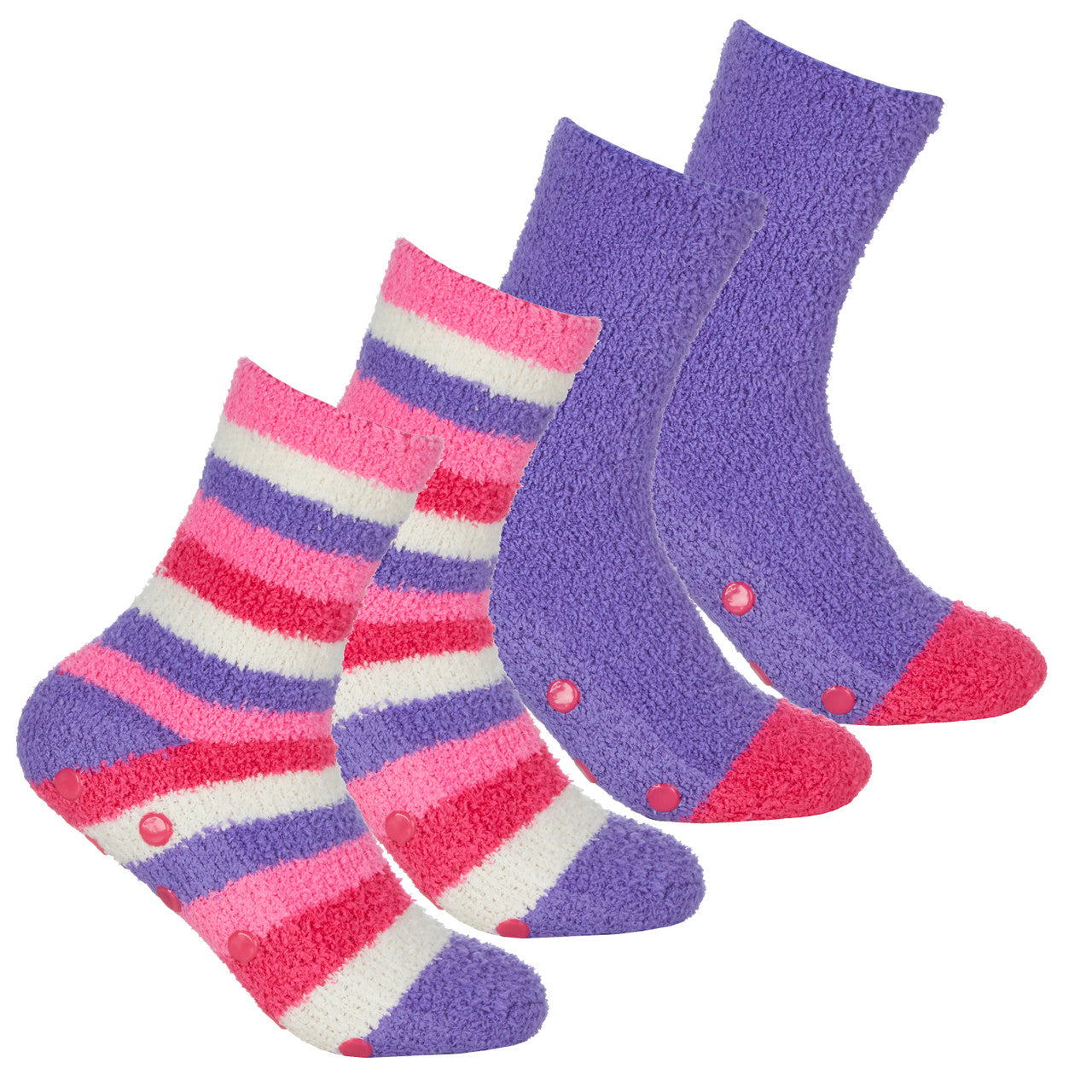 ๐Hey there, fashion lovers! Ladies Fluffy Cosy Chunky Non Slip Anti Grippers Socks 2 Pairs Purple๐