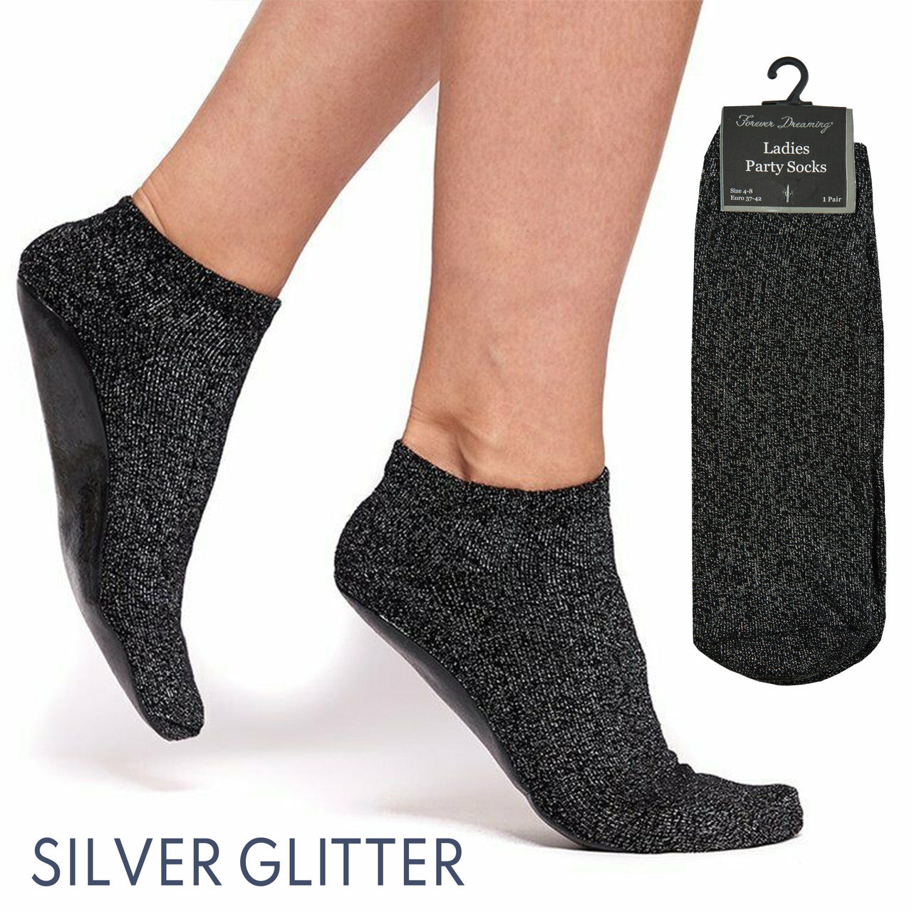 Ladies Party Low Cut Sparkle Abs Non Slip Grey Socks