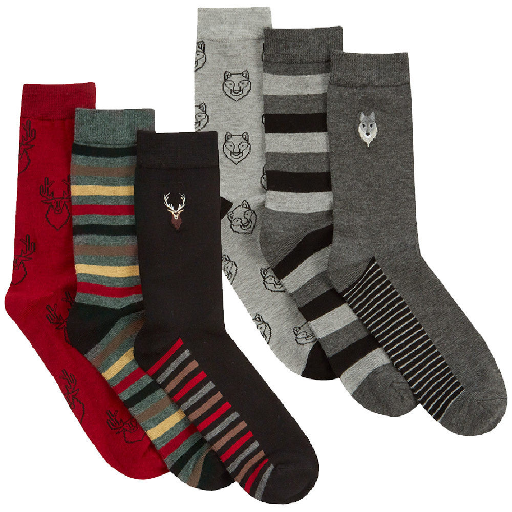 Mens Bamboo Stripped Printed Mid Calf Socks Multipack