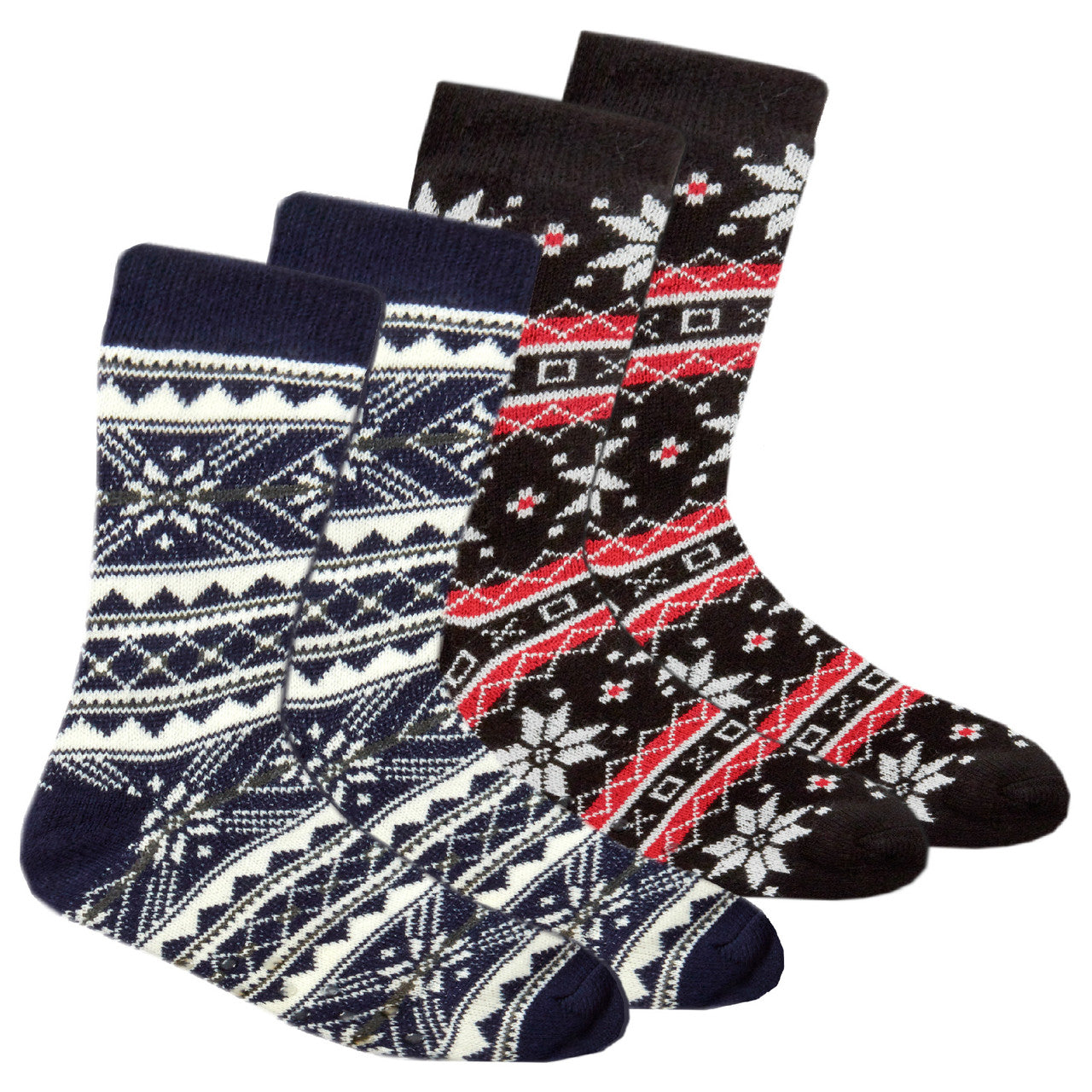 Mens Fluffy Chunky Warm Fair Isle Sherpa Lined Winter Socks with Grippers