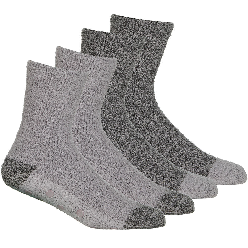 Mens Fluffy Cosy Winter Chunky Socks With Non Slip Grippers 2 Pairs Charcoal