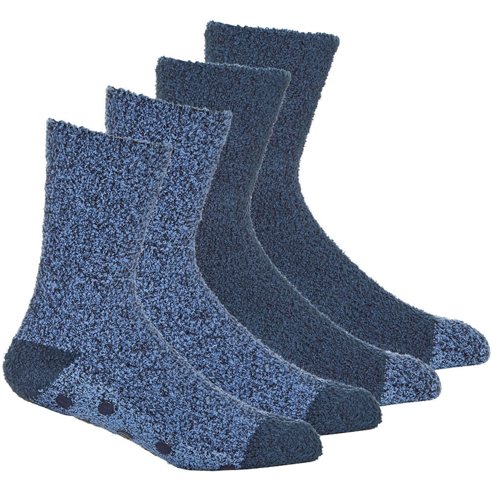 Mens Fluffy Cosy Winter Chunky Socks With Non Slip Grippers 2 Pairs Navy