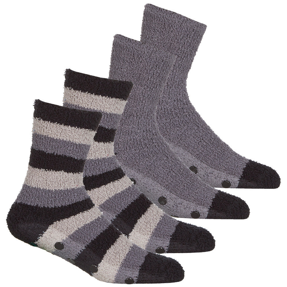 Mens Fluffy Cosy Winter Chunky Socks With Non Slip Grippers 2 Pairs- Stripes