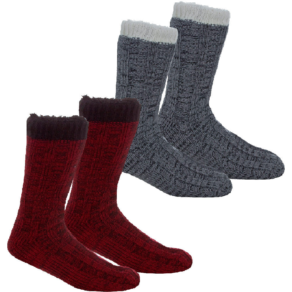 Mens Knitted Sherpa Lining Winter Socks With Anti Slip Grips