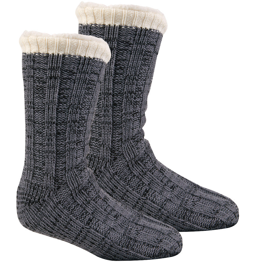 Acrylic knit for a super cosy sock that conforms to the shape of your foot whilst providing ultra warmth. These socks have a Sherpa Fleece Lining with a 100% Acrylic Outer Layer. Benefit from the combination of these materials as they offer qualities such as being ultra warm, anti shrink proof, eco-friendly, lightweight and moisture wicking. Features cross weaved pattern , anti slip grippers on the bottom and a ultra-soft and warm furry lining.Material Composition100% Actylic 100% Polyester Sherpe Lining ๐ฌ Shop now!