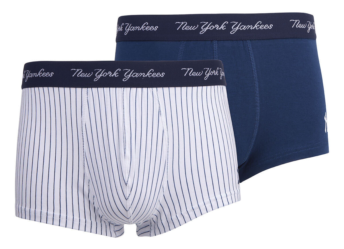 Presenting New York Yankees men's boxers. This two pack of boxers comes in two different styles, teal and stripy. Each pair features the NYY logo on the leg and waistband of these stylish pants. These boxers have a beautiful soft quality to them and are perfect for providing all-day comfort. NYY's boxers are also perfect for gifting as they come packed in a stylish box.Material Composition95% Cotton 5% Elastane ๐ฌ Shop now!