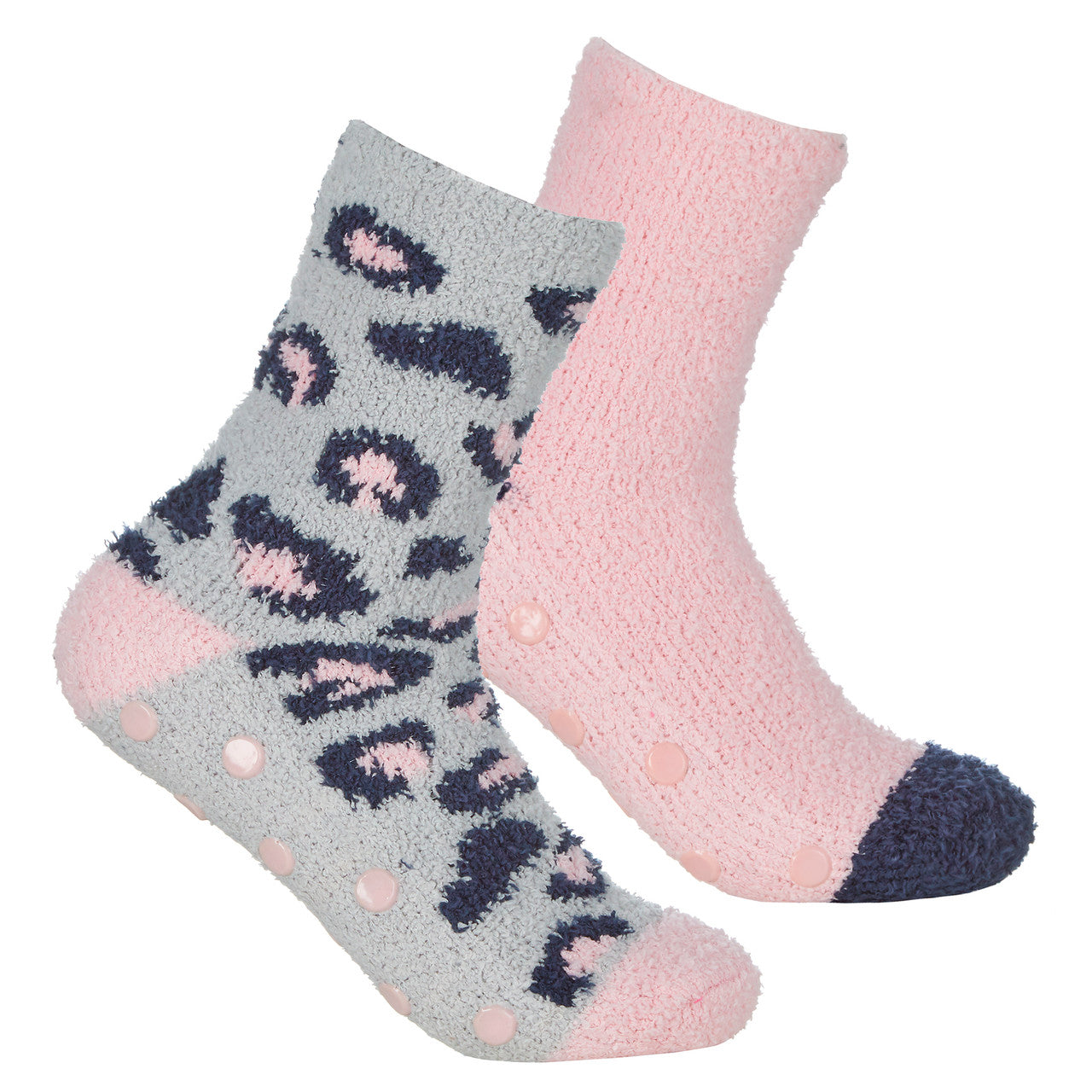 Womens 2 Pairs Fluffy Chunky Non Slip Anti Grippers Socks Pink
