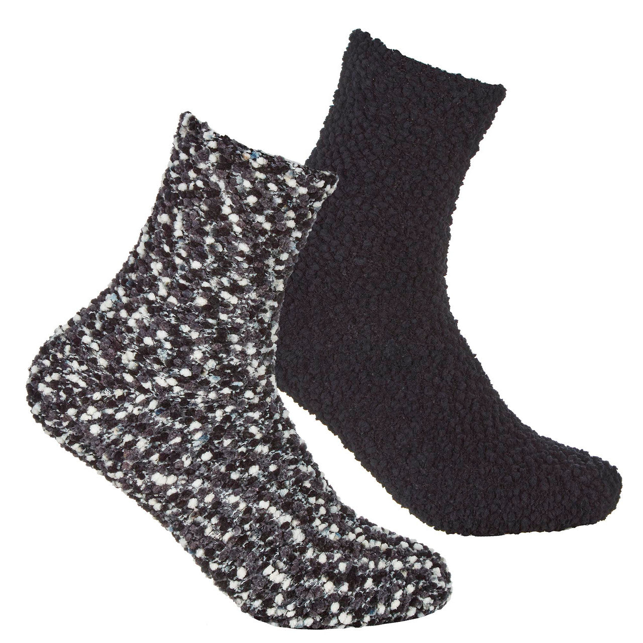 Womens 2 Pairs Fluffy Cosy Chunky Popcorn Socks Black