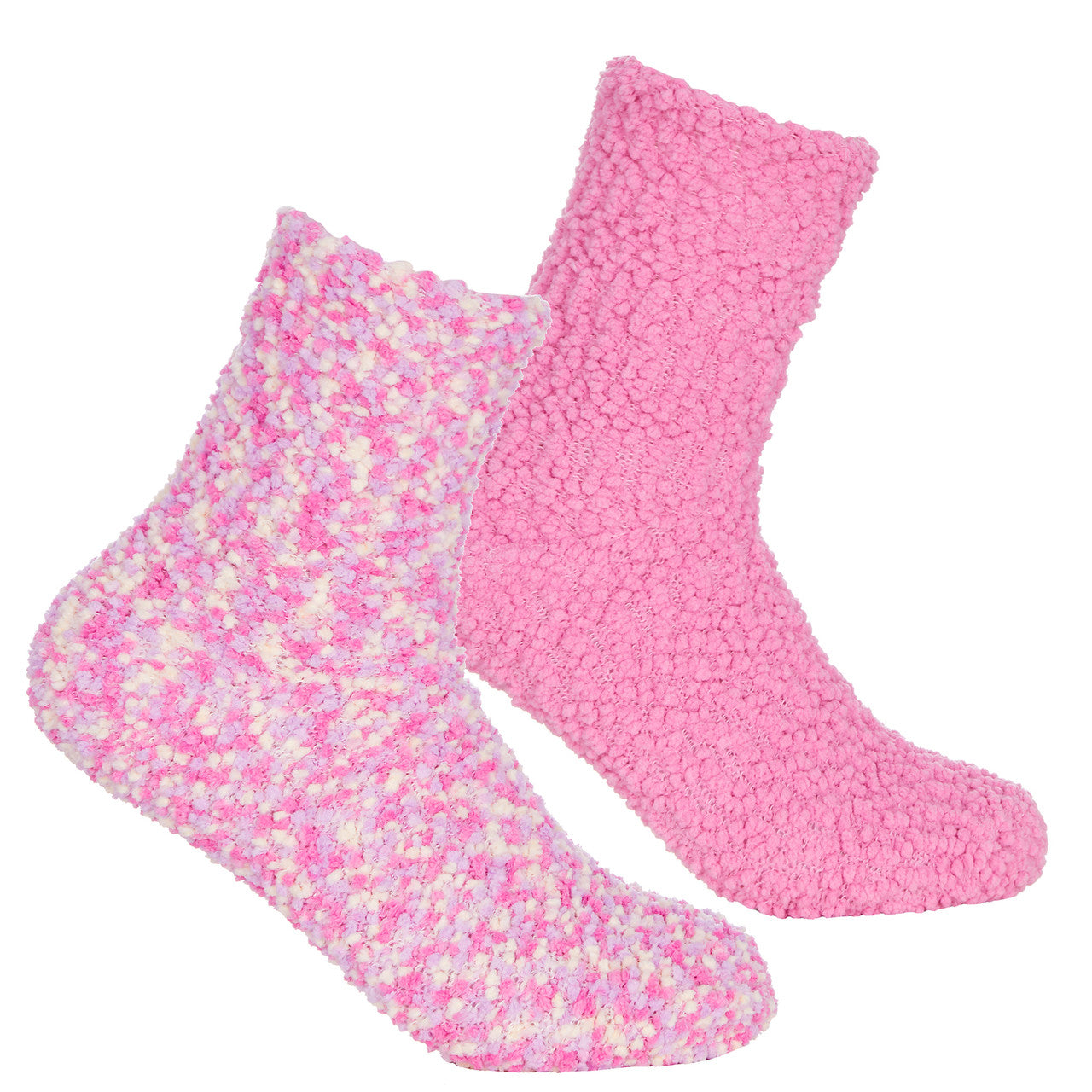 Womens 2 Pairs Fluffy Cosy Chunky Popcorn Socks Pink
