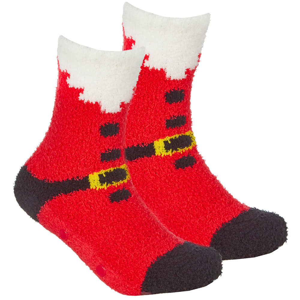 Womens Christmas Fluffy Bed Socks With Grippers 1 Pair- Santa