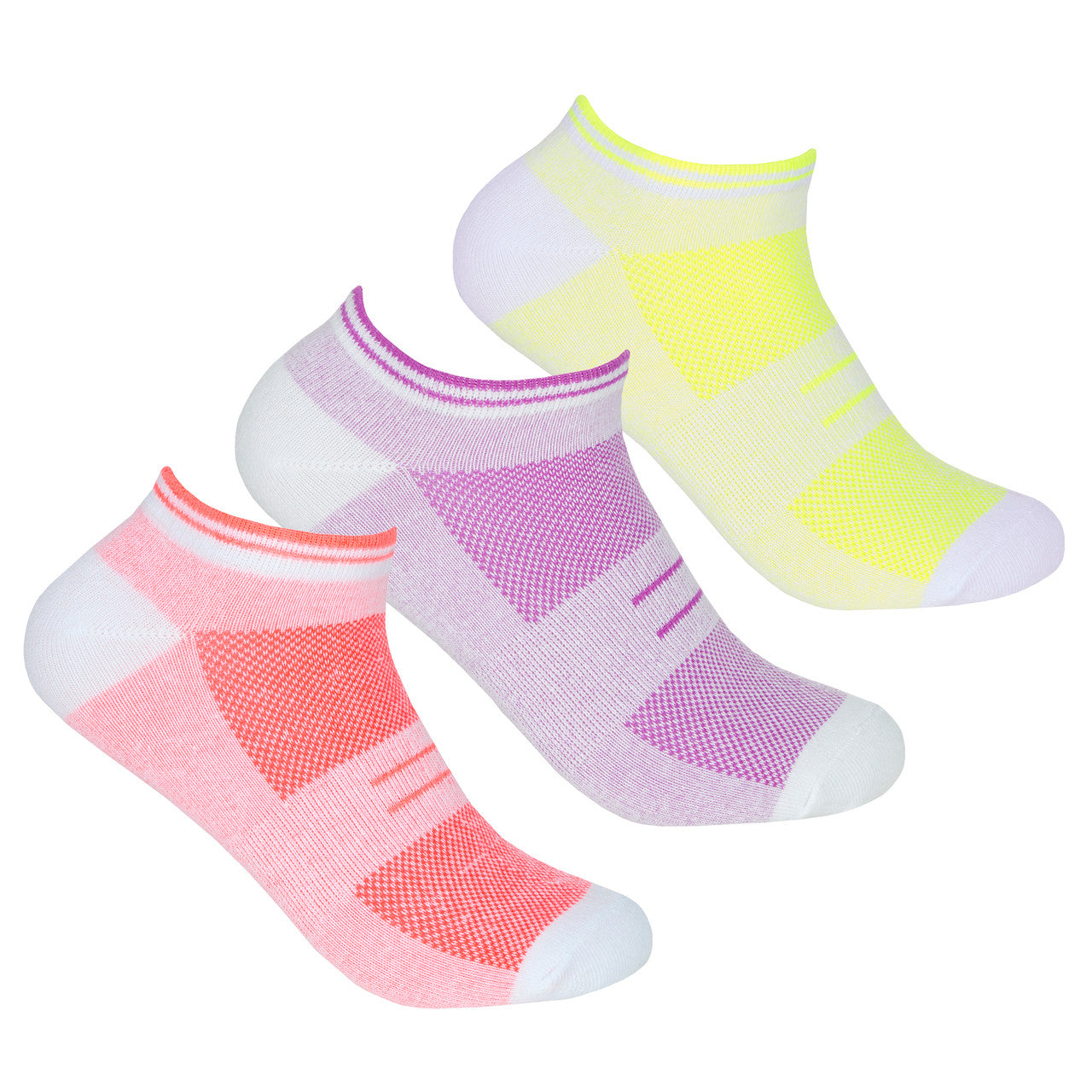 Womens Sport Trainer Liners Neon Assorted Low Cut 3 Pairs