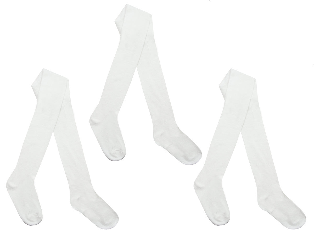 Girls Stylish Designed Back To School Plain Tights White - 3 Pairs